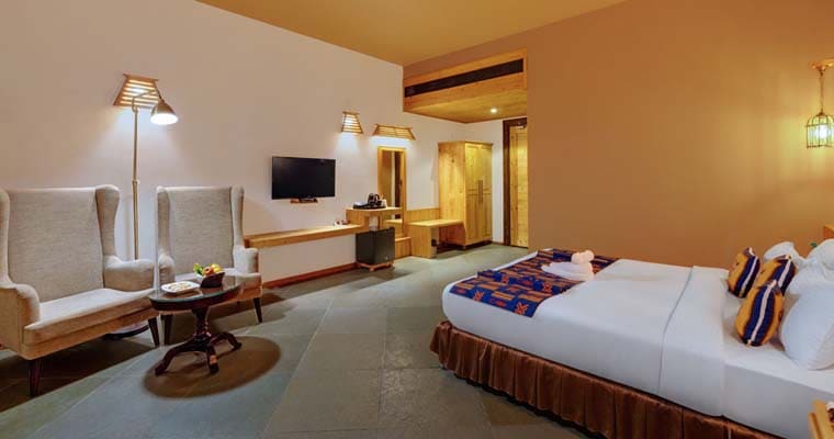 The Sarang Luxury Room at Tarangi Resort Jim Corbett offers an elegant and spacious retreat amidst the serene wilderness of Corbett. Designed for ultimate comfort, the room features refined interiors, modern amenities, and a private sit-out overlooking lush greenery. Ideal for couples and families, it combines nature with sophistication. Enjoy close proximity to Jim Corbett National Park, luxury hospitality, and unbeatable resort facilities